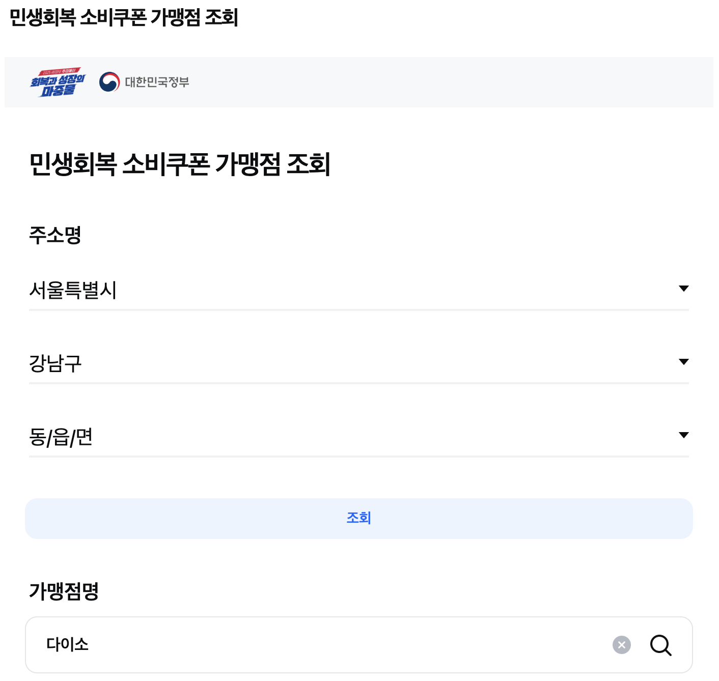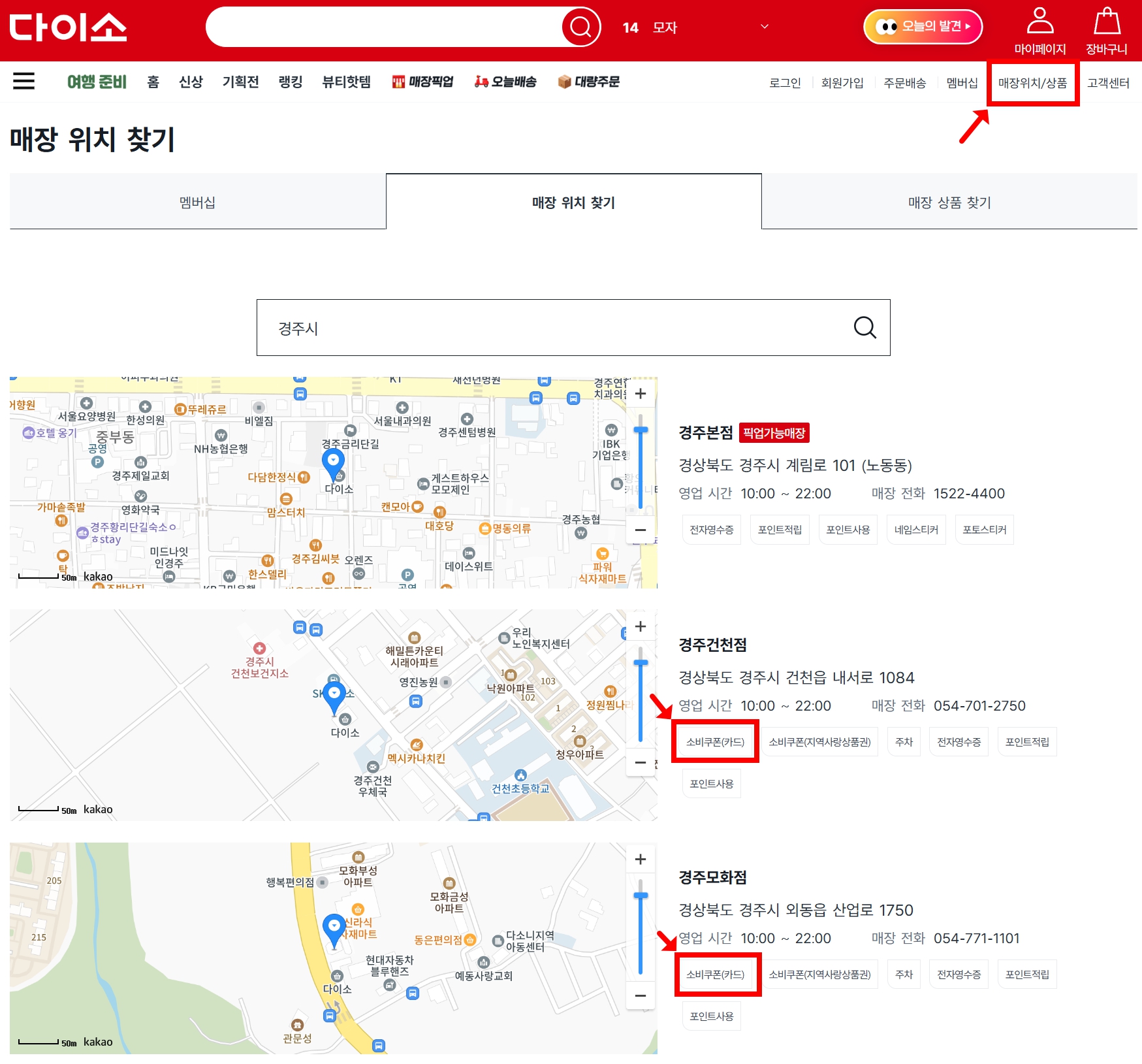 다이소 소비쿠폰 사용 가능한 매장 찾는 방법