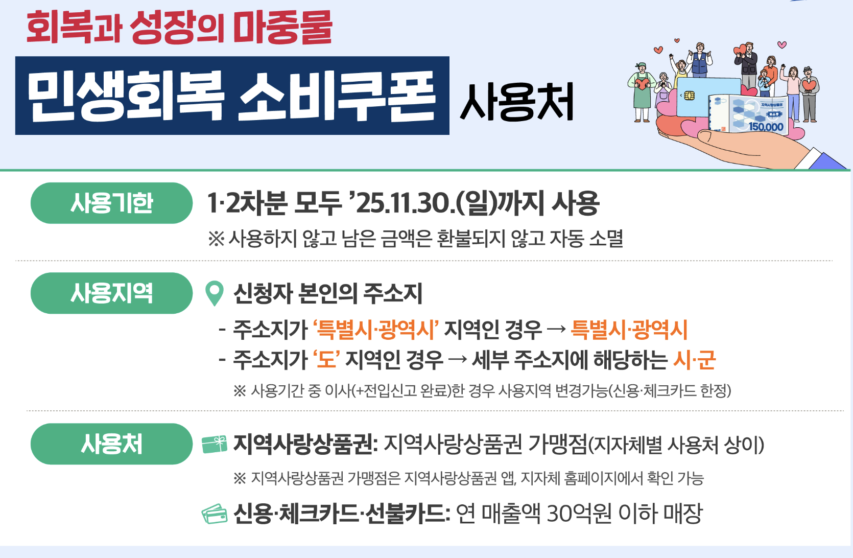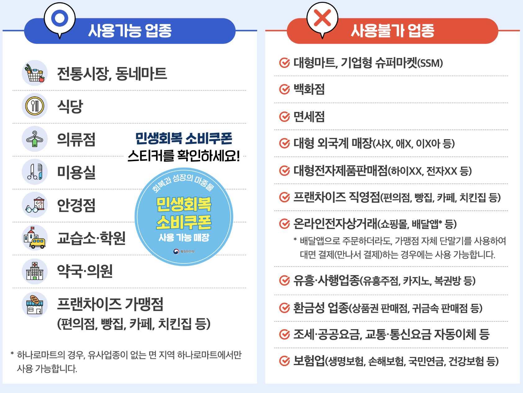 - 일부 가맹점에는 ‘민생회복 소비쿠폰 사용 가능’ 스티커가 부착되어 있음