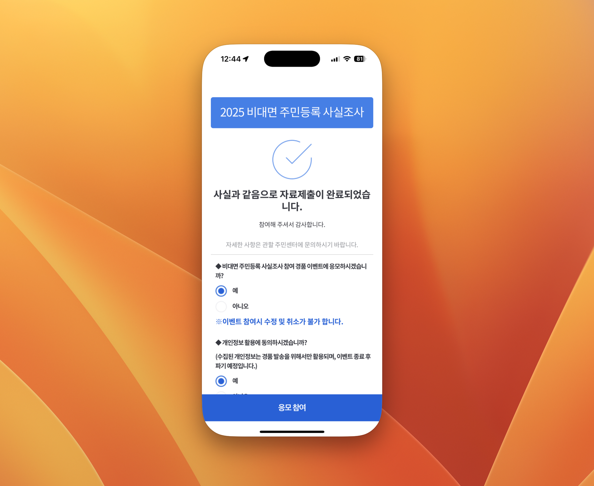 2025 비대면 주민등록 사실조사 참여 이벤트는